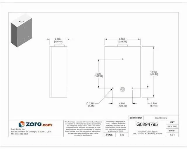 Load Center, Number of Spaces 6, Amps 100 A, Voltage 120/240V AC, Circuit Breaker Type QO, Included Enclosure Cover Surface Cover, Main Circuit Breaker or Main Lug Main Lug, Max. No. of Tandem Breakers 6, Phase 1, Series QO, Height 12.64 in, Width 8.91 in, Depth 4 1/4 in, For Use With Square D QO Circuit Breakers, Bus Material Tin Plated Aluminum, Short Circuit Current Rating 10kA, Enclosure NEMA Rating 3R, Cover Attachment Style Top Hinge, Cover Closure Method Latch.