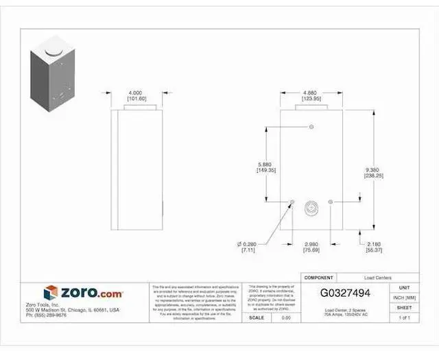 Load Center, Number of Spaces 2, Amps 70 A, Voltage 120/240V AC, Circuit Breaker Type HOM, Included Enclosure Cover Surface Cover, Main Circuit Breaker or Main Lug Main Lug, Max. No. of Tandem Breakers 2, Phase 1, Series HOM, Height 9.38 in, Width 4.88 in, Depth 4 in, For Use With Square D HOM Circuit Breakers, Bus Material Tin Plated Aluminum, Short Circuit Current Rating 10kA, Enclosure NEMA Rating 3R, Cover Attachment Style Top Hinge, Cover Closure Method Latch.
