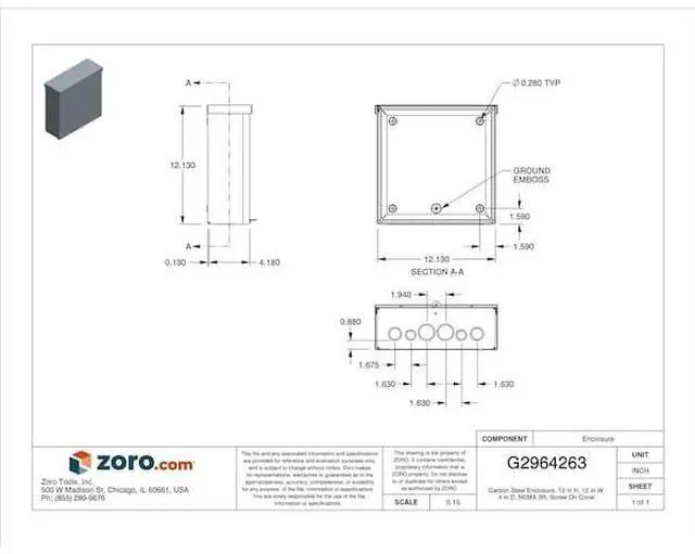Enclosure NEMA Rating 3R, Material of Enclosure Carbon Steel, 12 in, Screw On Enclosure Cover Type, Solid / Clear Cover Solid, Closure Method Padlock Hasp, Finish ANSI 61 Powder Coated, Color Gray, Depth 4 in, Enclosure Cover Features Padlockable Handle, Height 12 in, Includes Screws, Metal Gauge 16 ga, Wall Mounting, Series RSC, Standards CSA Certified, cULus, UL Listed, Usable Opening Depth 3.88 in, Width 12 in. This item has been restricted from sale in the following state (s): []