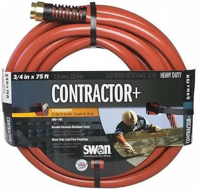 Item Water Hose, Features Abrasion Resistant, Crushproof Connection, Garden Hose Type Water Hose, Hose Color Red, Hose Configuration Coupled Assembly, Hose Cover Material PVC, Hose Fitting A Material Aluminum, Hose Fitting A Size 3/4 in, Hose Fitting A Type MGHT, Hose Fitting B Material Aluminum, Hose Fitting B Size 3/4 in, Hose Fitting B Type FGHT, Hose Inside Dia. 3/4 in, Hose Length 75 ft, Kink Resistant No, Temp. Range 55 Degrees to 120 Degrees F. This item has been restricted from sale in the following state (s): []