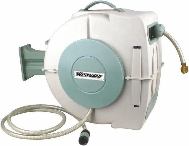 Spring Return Garden Hose Reel, Garden Hoses, 150 psi, 60 psi, Hose Capacity 65 ft (1/2 in I. D. ), Drive Type Spring Return, Hose Reel Type Wall Mount Hose Reel, Includes Hose Yes, Single Pedestal, Speed Limited Retraction No, Corrosion-Resistant Yes, Reel Material Polypropylene, Mounting Location Wall, Hose Color Beige, Hose Cover Material PVC, Hose Tube Material PVC, Hose Fitting A Gender Female, Hose Fitting A Size 3/4 in. This item has been restricted from sale in the following state (s): []