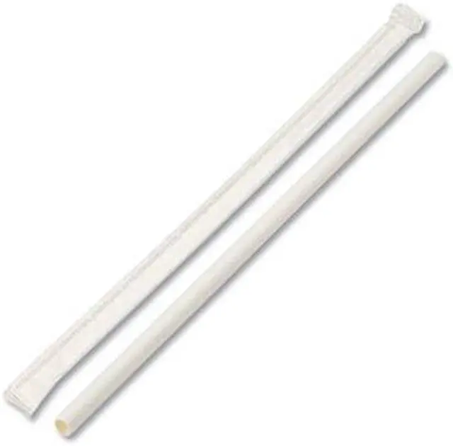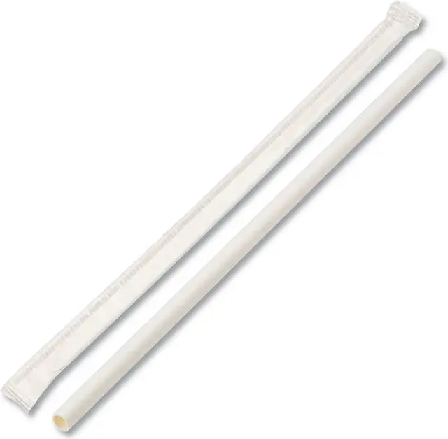 Paper straws are the perfect alternative to plastic straws. They are composed of food safety paper to create a smooth and sturdy straw for sipping. The materials used do not contain BPA. Each straw is individually paper wrapped to ensure the straw remains sanitary, even after handling. Designed to be more suitable for cold and room temperature drinks. Hot drinks should be at moderate temperature. Color(s): White; Color Family: White; Material(s): Paper; Size: 7.75 x 0.25.