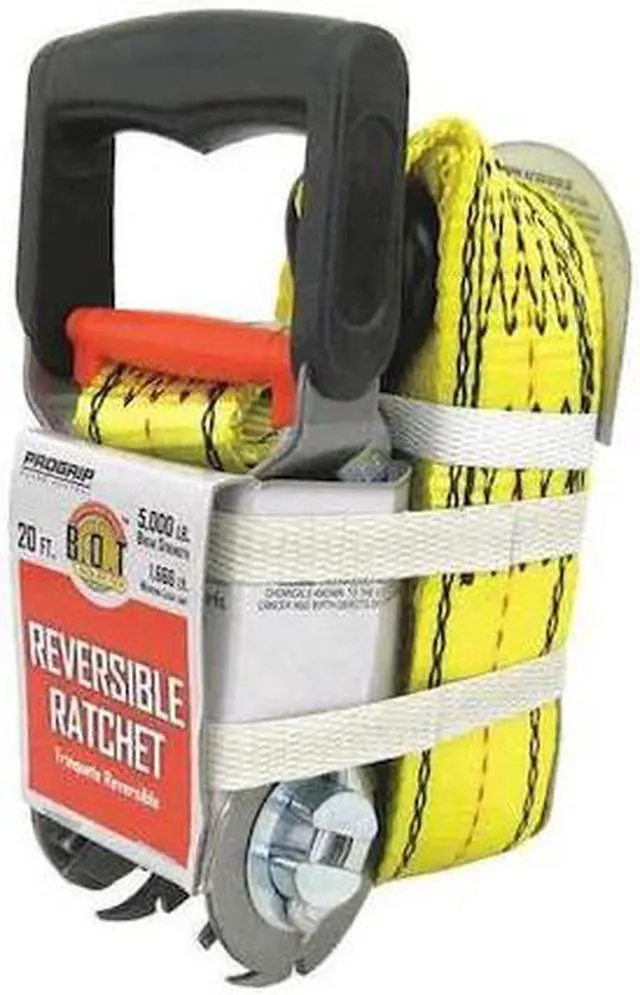 Tie Down Strap, Cargo Tie Down Adjustment Reversible Ratchet, Cargo Tie Down Length 20 ft, Cargo Tie Down Width 1 1/2 in, Working Load Limit 1, 665 lb, Breaking Strength 5, 000 lb, Cargo Tie Down Material Polyester, Cargo Tie Down End Material Steel, Color Yellow, Cargo Tie Down End Type J-Hook, For Use With Flat Beds, Gooseneck Trailers, Hd Trailers, Heavy Equipment, Ski Boat, Small Car, Includes Hardware, Mounting Instructions, Manufacturers Warranty Length 90 day