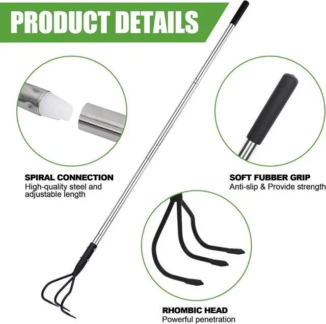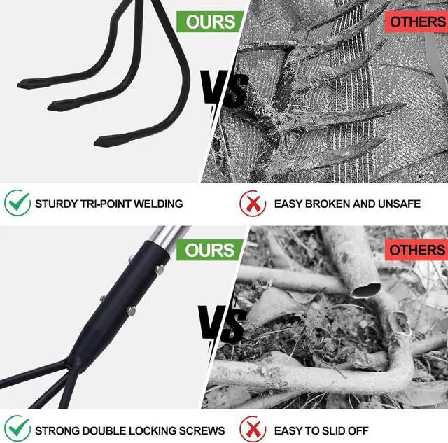 Durable Material: The long handle garden tiller is made of high-quality steel material with anti-rust coating, which is strong, durable, waterproof and not easy to break. The structure is stable and not easy to deform, and it can withstand high-intensity work