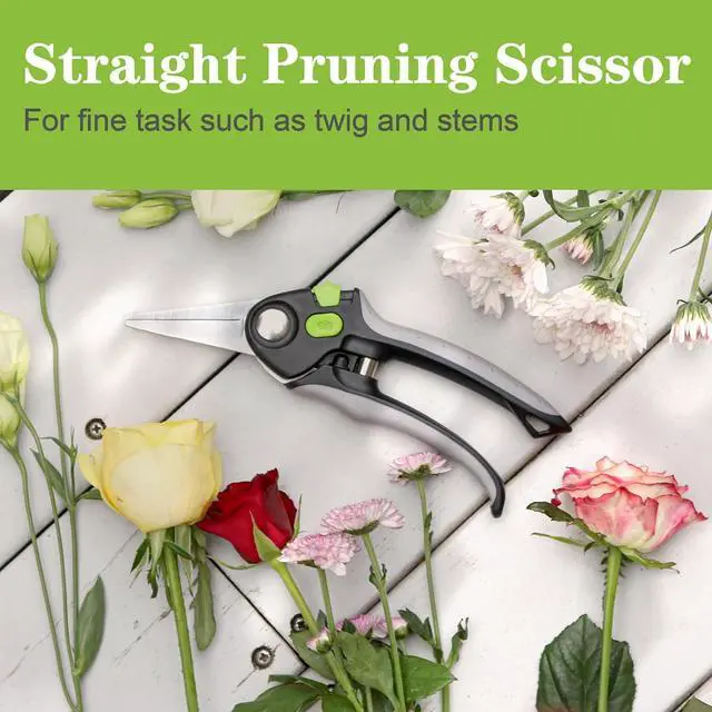 APPLICABLE TO VARIOUS SCENARIOS: 3 different types of bypass pruners for fine pruning. The ratchet anvil pruners suitable for cutting woodier branches, the bypass pruner suitable for pruning flowers, shrubs, vines, picking fruit trees, the straight hand pruner suitable for trimming grass. Whether you are tackling with thicker branches, or small roses twigs. These gardening scissors set is highly used for its effectiveness, practicality used in backyard, home garden, park landscaping, or plant pruning, such as garden planting, small gardening work.