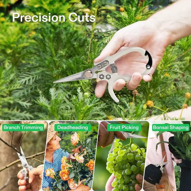 Makes Precise Cuts: With razor-sharp, straight blades, these garden scissors deliver clean, effortless cuts ideal for fine, delicate trimming; It can be used for deadheading, trimming, fruit picking, and shaping flowers and bonsai plants with precision