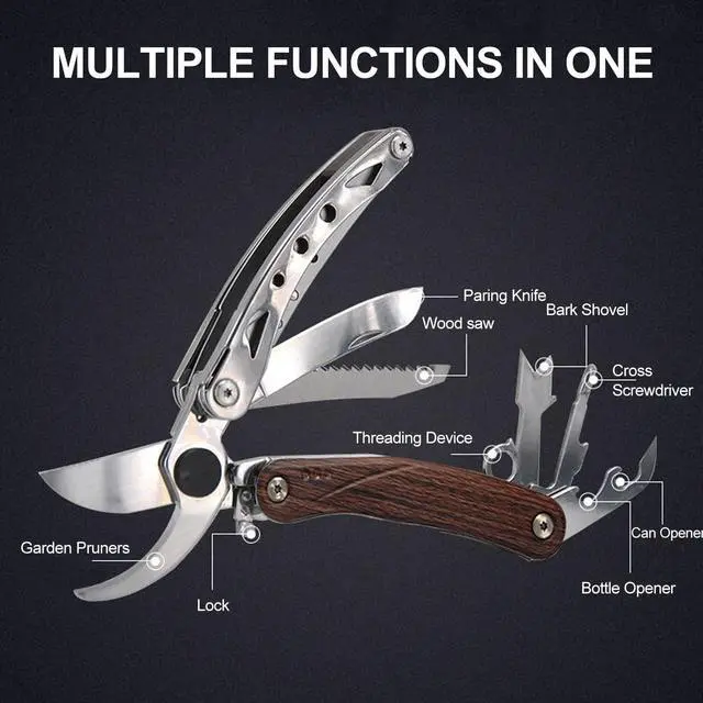 7 in 1 MultitoolThe pocketknife only a garden helper, but also a paring knife, wood saw, bark shovel, cross screwdriver, bottle opener, and can opener, 7 functions are integrated into 1 tool. These practical gadgets help solve gardening and life problems at any time. It can be easily folded and portable with you anywhere.
