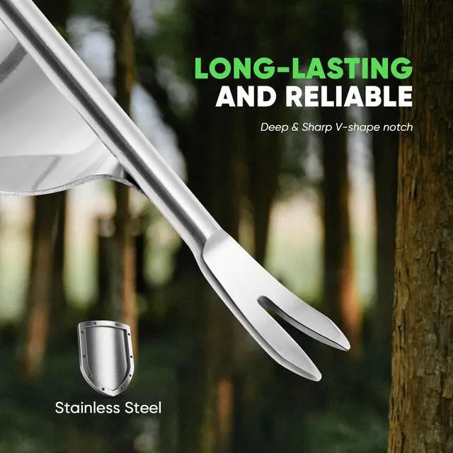 DURABLE BUILD: Made of premium quality stainless steel, the weed removal tool provides excellent durability; The polished stainless steel head is rust-resistant and stays sharp even with frequent use; The weeder is a handy and practical tool for garden work