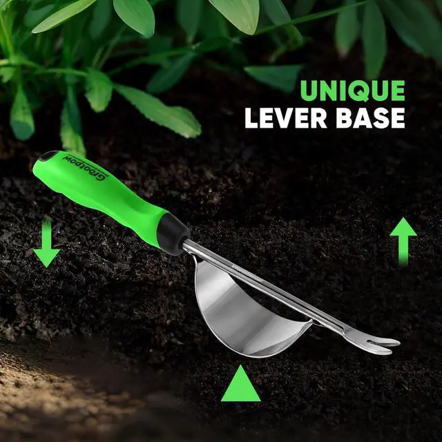 MAXIMIZE WEEEDING EFFICIENCY: The leverage metal base coupled with the deep V-shaped fork design allows for maximum power in uprooting tough weeds. Rest the curved metal base on the grass and use the lever action for easy weed removal