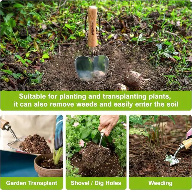 Sturdy: The hand shovel is made of high-hardness polished stainless steel that is extremely resistant to rust and corrosion, ensuring that it won' t deform, bend, or break during use. The garden trowel plant transplanting tools can easily handle any indoor or outdoor gardening scenario. Quickly meet any challenges in gardening.