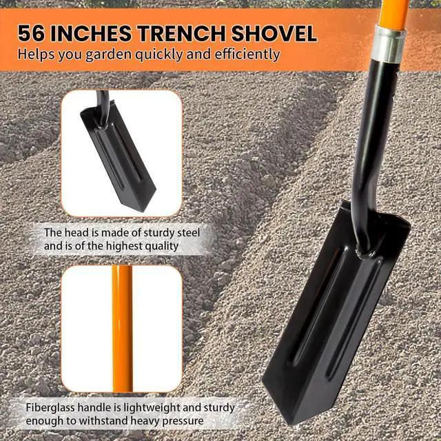 Quality Material: The trenching shovel head is made of sturdy steel, strong and sharp with high quality. Heavy duty shovel has a fiberglass handle that is lightweight and sturdy, and the top of the handle is made of non-slip rubber. All of this helps you do a better job of gardening.