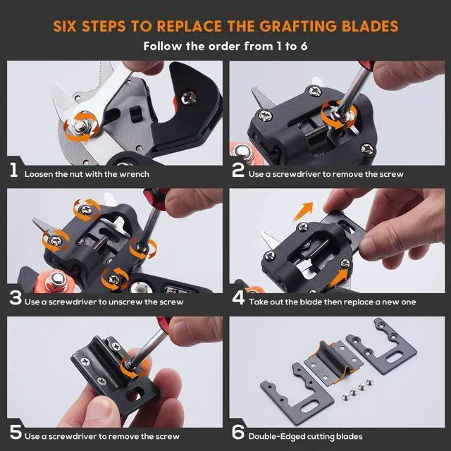 HIGH QUALITY MULTI-SHAPE GRAFTING BLADE: Three blade replaceable configurations (U-shaped, V-shaped, -shaped), can be switched at will, the incision is smooth, the survival rate is high, and the anastomosis interface is directly pressed out without a small knife to meet different grafting requirements. The max can cut nearly 10mm small fruit branches. Keep it tidy after use to extend its life