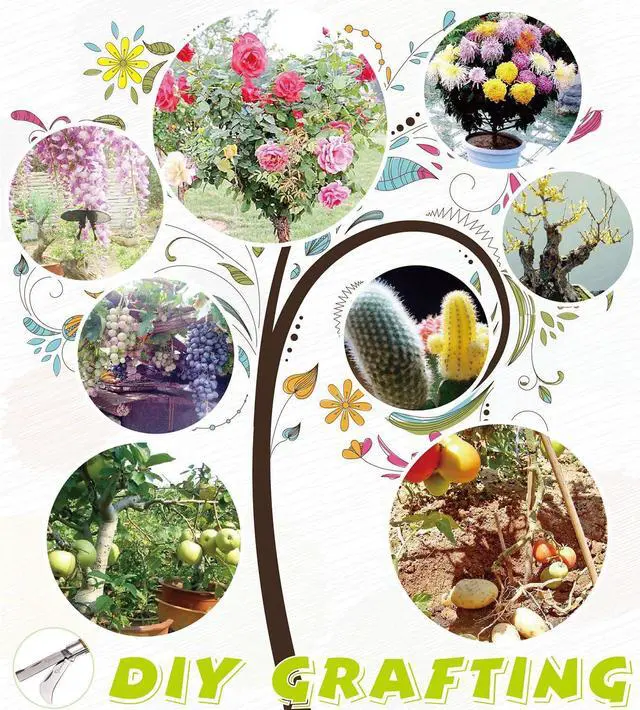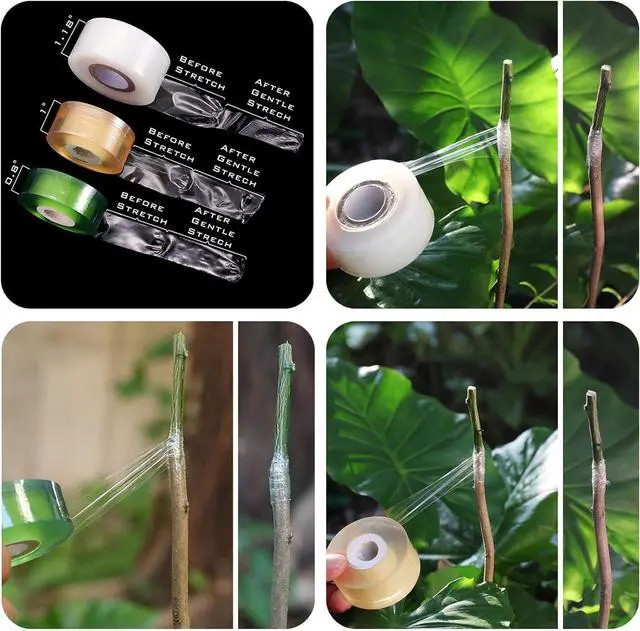The grafting kit includes 1 double blade grafting knife, 3 width grafting tapes with different elasticity, and 12 write-on plant label