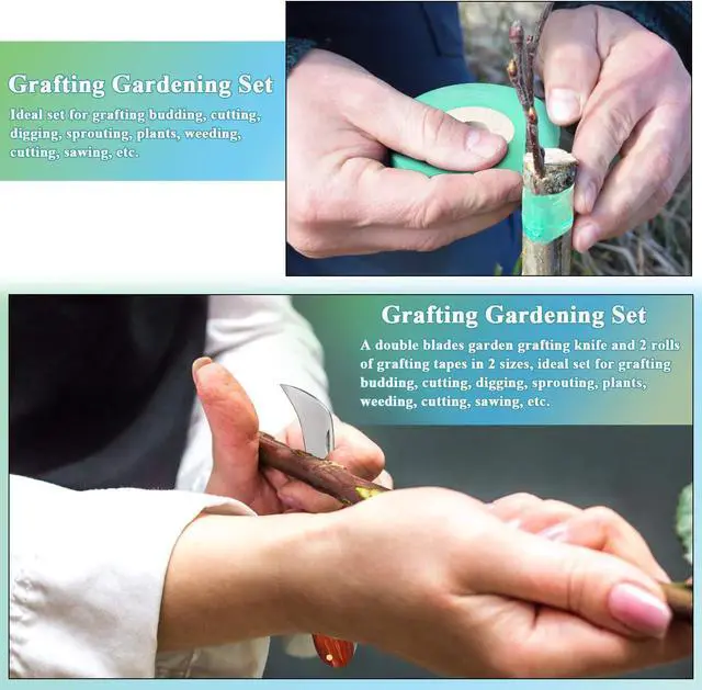 Package includes: you will get 1 double blades garden grafting knife and 2 rolls of grafting tapes in 2 sizes, ideal set for grafting budding, cutting, digging, sprouting, plants, weeding, cutting, sawing, etc.