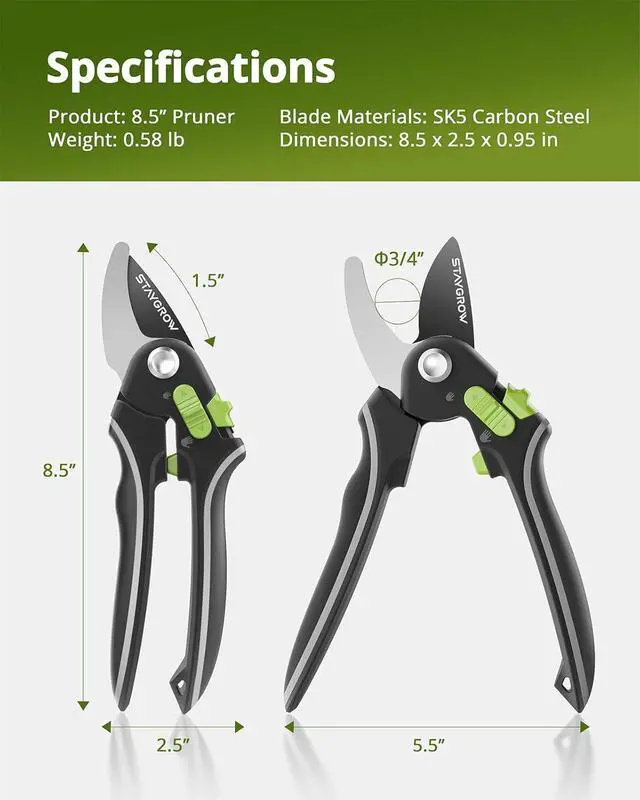 Lifetime Care Coverage: Committed to quality, our heavy-duty handheld garden shears are built to last, offering lifetime care coverage. STAYGROW is so confident in our high-quality pruning shears that we always stand by our products