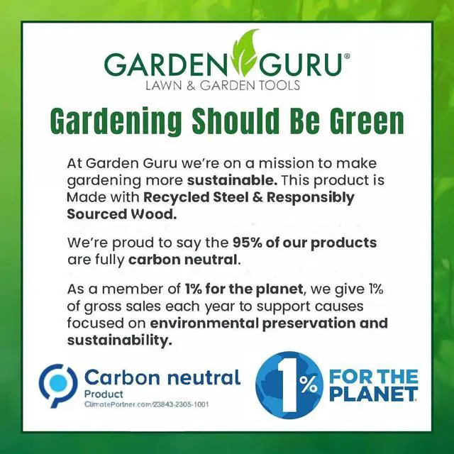 Responsibly Produced: Garden Guru uses recycled and recyclable materials where possible and is committed to reducing environmental impact. This product is certified carbon neutral, and all emissions impacts are offset from the start of manufacturing to the end of the product' s lifecycle.