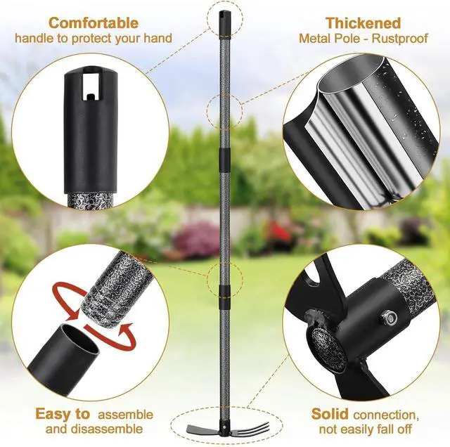 Easy to Assemble and Store: 5 mins to assemble the weeding tool by screwing poles together with no extra tools required. It stores nicely whether you take it apart or just hang it!