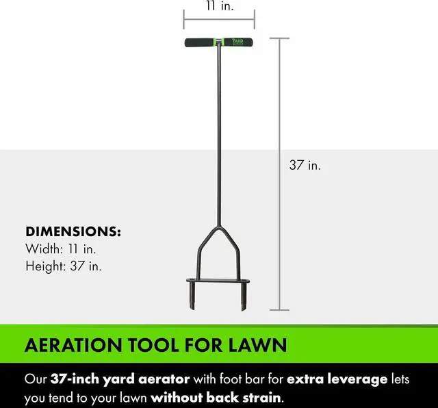 EASY TO USE: Our 37-inch yard aerator lets you tend to your lawn without back strain. The foot bar provides extra leverage for quick and comfortable push so you can aerate your whole yard efficiently and easily. This type of lawn aerator works best when you pre soak the lawn before using it if you have hard, dry soil.