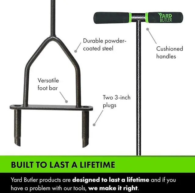 DURABLE: The Yard Butler lawn aerator tool was built to last with durable steel construction. The powder-coated steel is heavy-duty and rust-resistant. Cushioned handles provide additional grip. Yard Butler Pro Tools are designed to last a lifetime.