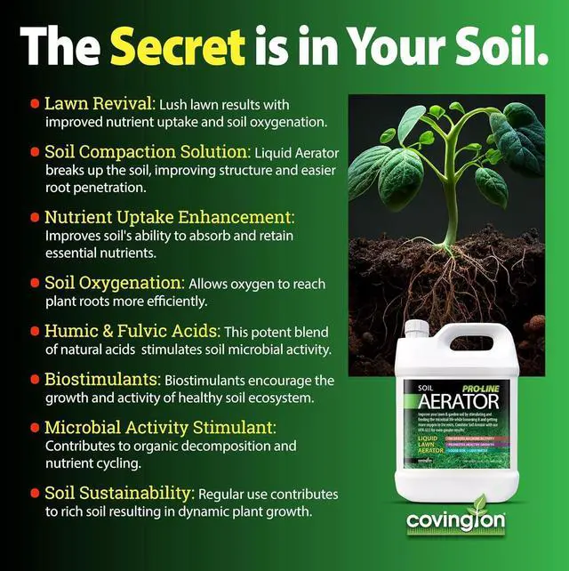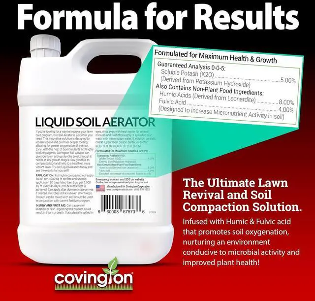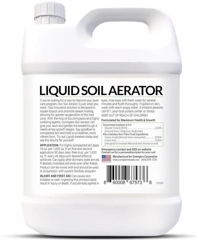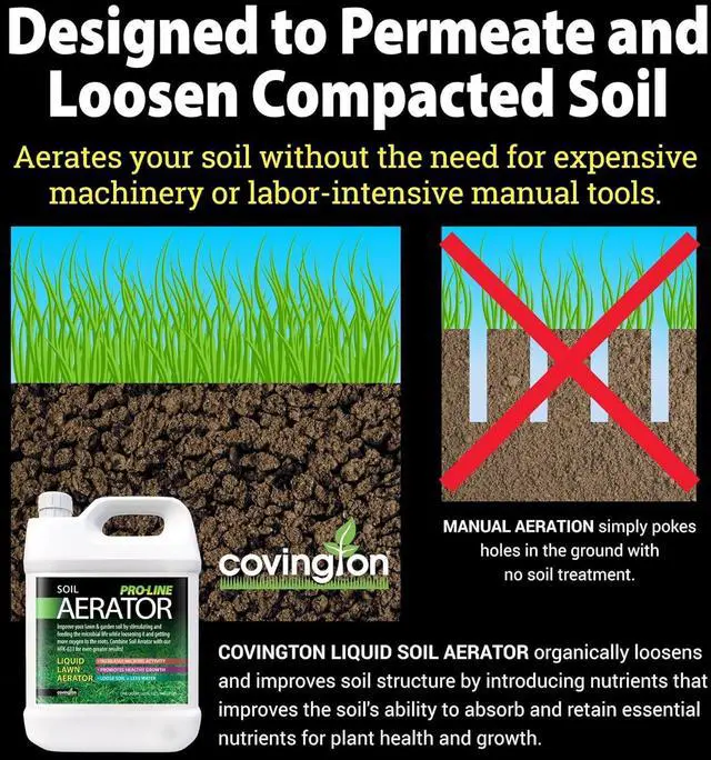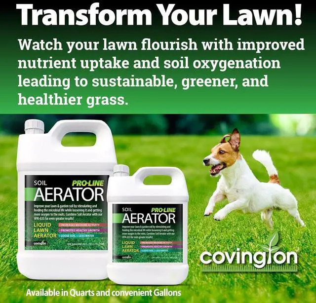 Advanced Liquid Soil Aerator PRO-LINE Formula: Covington Naturals PRO-LINE liquid aerator offers powerful deep-soil conditioning to break up compacted soil and improve structure for better nutrient absorption. Perfect for tough clay soil, this advanced formula promotes stronger root development and a healthier, greener lawn.