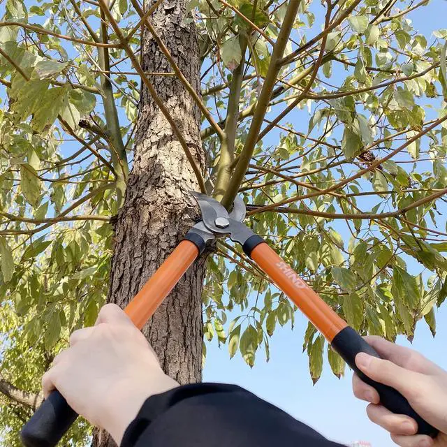 COMFORTABLE HANDLE The tree cutter' s ergonomic handle is made of strong stainless steel to keep it straight and won' t bend when you cut large and thick branches. The orange-black rubber wrap of the handle is bright and bright while being hand-friendly, suitable for parents and friends Children, anyone who likes to work