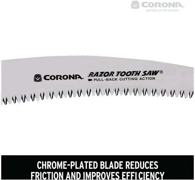 CHROME-PLATED BLADE reduces friction and improves tree trimming efficiency