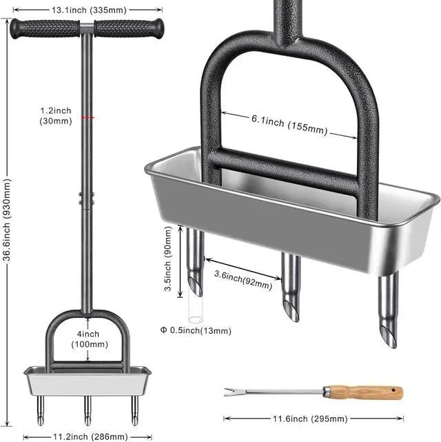 12 Weeding Tool: The lawn aerator comes with a 12 hand tool that can be used to clean the aerator. It is also useful for transplanting seedlings and weeding, making it very convenient.