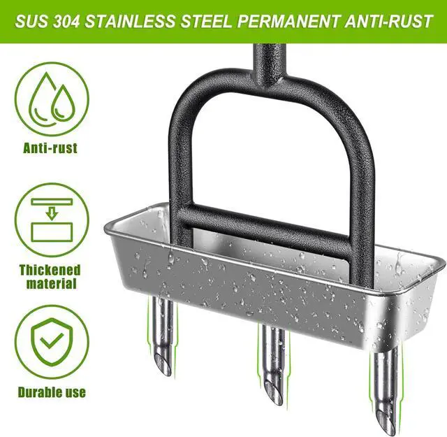 Stainless Steel Coring Plugs: Our 3 core aerator plugs uses sus 304 stainless steel material that will not rust or bend out of shape. Additionally, our rod is made from high-quality solid steel with a black powder coating on the surface to ensure long-term use of the tool.
