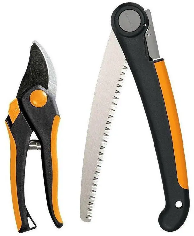 Folding Saw and Pruner Set, Garden Clippers, Gardening Scissors with Sharp, Rust Resistant Steel Blade with Folding Pruner Saw with Power Tooth Saw Blade