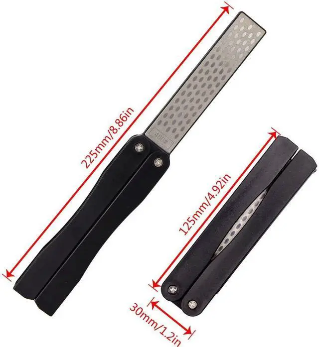 Knife Sharpener SIZE: diamond whetstone: 4 x 0.8 x 0.2 inch; folding length: 5 inch; spread length: 8.9 inch .Package includes: Black/ Orange2pcs