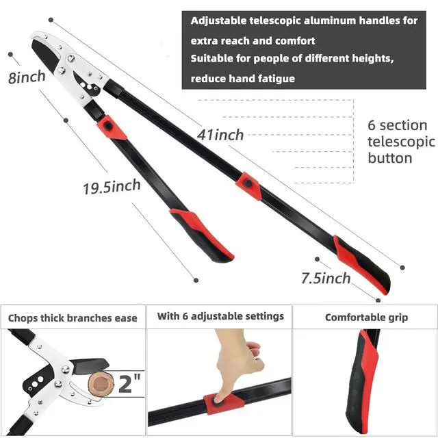 | Handle Material | The handle of the hedge shears, lopper, and pruning shears are made from reinforced aluminum alloy, and ergonomic non-slip rubber grips |
