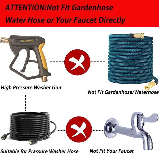 It is not suitable for garden water pipes, ordinary water pipes, faucets. You must have a pressure washer to use it properly.