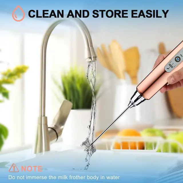 - Just rinse this handheld milk frother with running water. Running water can remove dirt, milk stains or other residues attached to the surface of the frother, ensuring the hygiene and performance of the product.