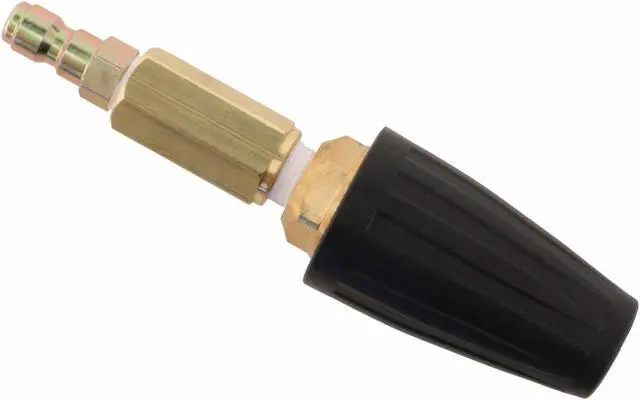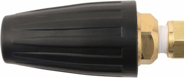 This kit includes the Erie Tools Pressure Washer Rotating Turbo Nozzle with 1/4-inch Quick Connect plug, 3.0 orifice rated for 3,000 PSI and a Giant 22175 1/4-inch NPT x 1/4-inch FNPT Turbo Filter. The nozzle rotates a powerful 0° spray pattern in a circular motion to break down dirt and grime. The spinning water adds additional scrubbing ability to the cleaning process.