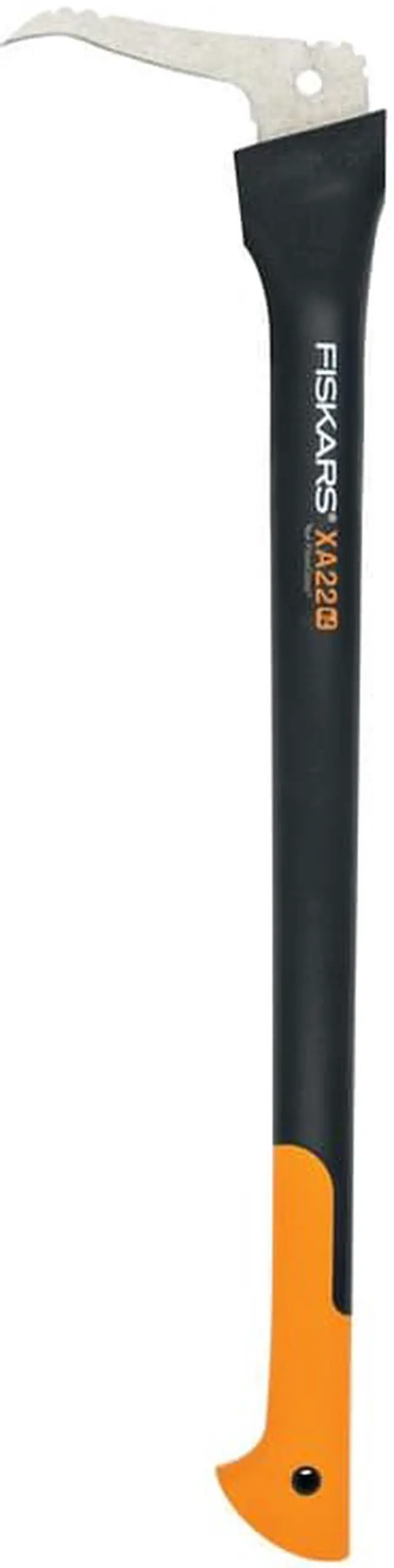 The pointed, angled blade of this 28” Hookaroon bites quickly and securely into firewood to make grabbing and moving logs easier. Use it to lift logs, drag logs or extend your reach when moving larger logs. A longer handle makes it an ideal tool for reducing the toll that stooping takes on your body during tough wood handling jobs. A hardened boron steel head boasts the ideal profile and texturing for grabbing and releasing wood at will. The sturdy, lightweight handle is enhanced with non-slip grip and a flared end for even more control. Plus, an included sheath helps protects the blade and user during transportation and storage.