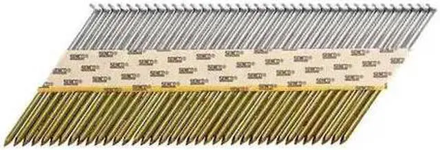 Best for framing, sheathing, subfloor, decks, trusses and pallets. Diamond point. Sencote coated. Head Type: Offset Round Angle: 34 Degree Length: 3 In. Shank Diameter:. 131 In. Shank Type: Smooth Finish: Bright Collation: Paper Tape