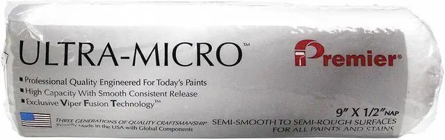 Paint Roller Cover, Length 9 in, 1/2 in Nap, Cover Material Microfiber, Core Material Polypropylene, Paint Type All, Semi-Smooth Surfaces. This item has been restricted from sale in the following state (s): []