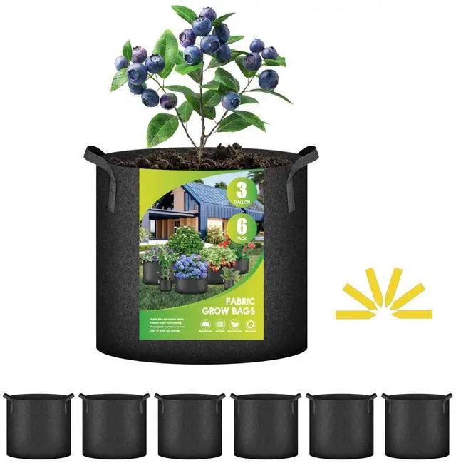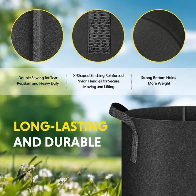 Thickened Nonwoven Fabric: BPA-free, safe for growing vegetables and other crops; Industry-leading thick nonwoven fabric, nylon handles, reinforced stitching for greater durability; free and easily standing with/without soil fulfilled