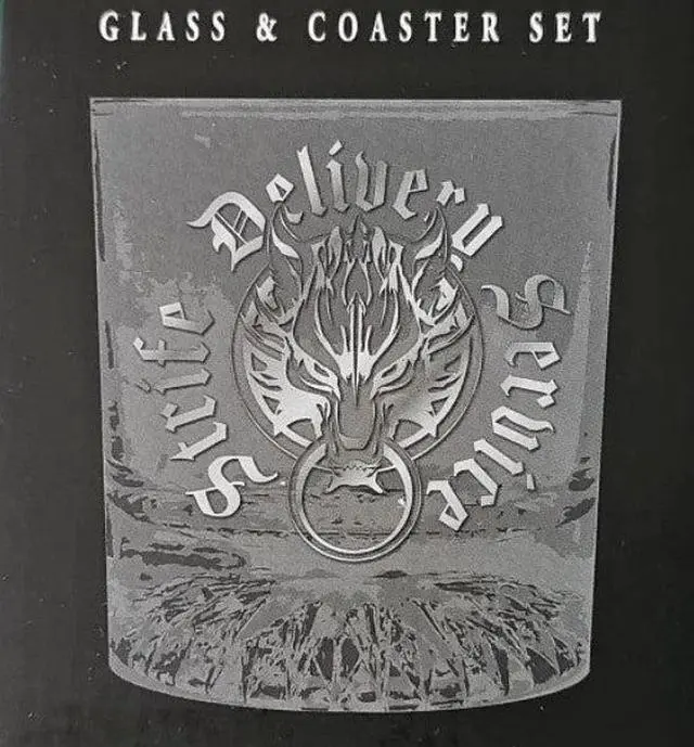 This awesome set featuring the Strife Delivery Service logo from "Final Fantasy Advent Children" includes a glass, a coaster, and a bottle tag! The bottle tag can be attached to your bag, too, if you like. Order yours now!