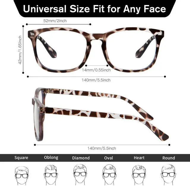 - Clear lens Design: The lens of blue light blocking glasses was made of a fully transparent base, without any pigment, while maintaining high light transmittance. Less reflective, no affect reading, and almost no color difference