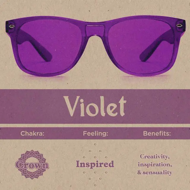 Wear Violet Color Therapy Glasses when you are looking for a bit of inspiration or creativity in your daily life. Maybe you’re having trouble with a few lines in your poem. Maybe you’re looking to start a new hobby, but can’t find the motivation to dive in. Put these violet glasses on and feel that extra push of creativity and drive that you are looking for.