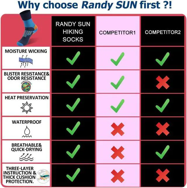 Multi-function : You can wear them as hiking socks, outdoor socks, school socks, sport socks, indoor socks, boot socks, are perfect for all outdoor activities, in all weather conditions or in any wet areas!