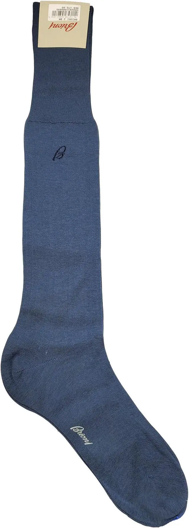Brioni Men's Medium Blue 100% Cotton Long Ribbed Knit Socks (11)