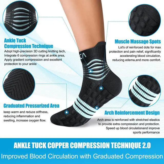 Ankle Tuck Compression Tech: Adopt high-precision 3D cutting technology of knitting, Integrate 6 compression rings at ankle, boost your performance.
