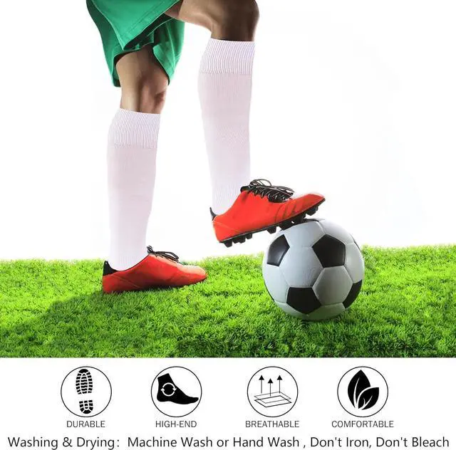 Comfortable& Breathable: Long tube soccer socks enables an excellent and amazing ball touch along. The toe cooling feature in the socks gives additional ventilation while playing. Premium fabric keeps your feet comfortable after long-playing soccer game.