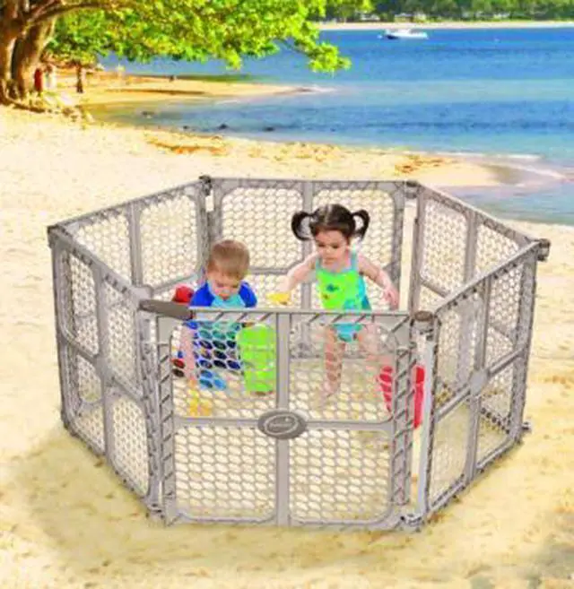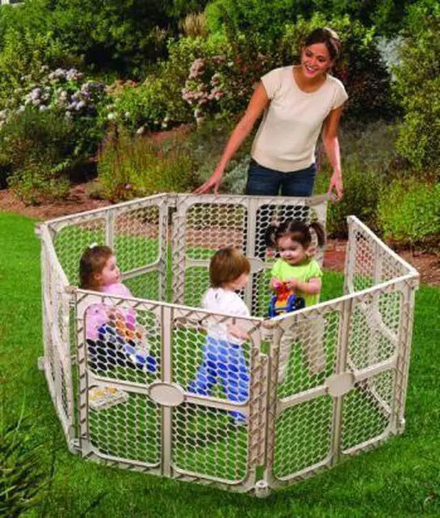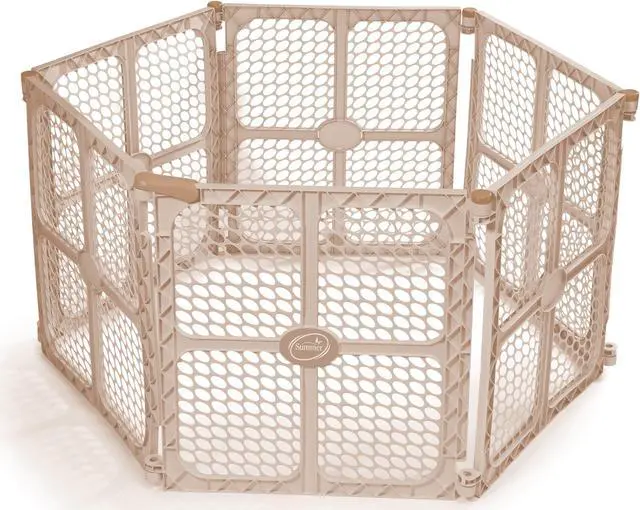 For parents wanting to create a safe play area for their child that’s easy to set-up, lightweight and conveniently portable, the Summer Infant SecureSurround Playsafe Playard is the solution. It provides a complete barrier for your child or pet and includes six plastic panels that easily connect to create a configurable gate or a free-standing play area. In addition, the Summer Infant SecureSurround Playsafe Playard features a convenient walk-thru door and includes a handle so you can easily carry it from one room to another and even outside.