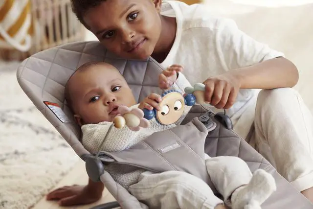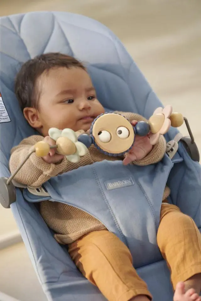 A cute and fun toy that your baby will love! Its brightly colored shapes are fascinating for your baby to look at and play with. The toy bars features are easy to spin around, and the funny eyes make your baby smile and laugh. Playing also helps your baby discover physical capabilities and develop motor skills. The toy bar is easy for a grown-up to attach and remove, and fits both BabyBjorn Bouncer Balance Soft and Bouncer Bliss.