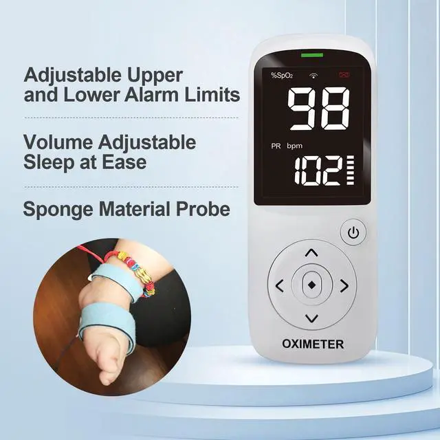 This infant pulse oximeter is specially designed for newborns and babies, featuring a soft wrap-around sensor that gently attaches to the foot for comfortable daily use. It measures oxygen saturation (SpO) and pulse rate, allowing parents to observe and track their babys wellness at home. Powered by replaceable dry batteries, it provides reliable operation without the need for charging. The clear digital display provides instant readings, making it easy for parents to monitor and record daily observations. For Non-Medical Use Only Intended for wellness, sports, aviation, and daily care purposes. Not a medical device and not intended for diagnosis or treatment.