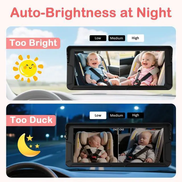The 150° wide angle and 360° adjustable camera captures a perfect all-around view of the rear seat