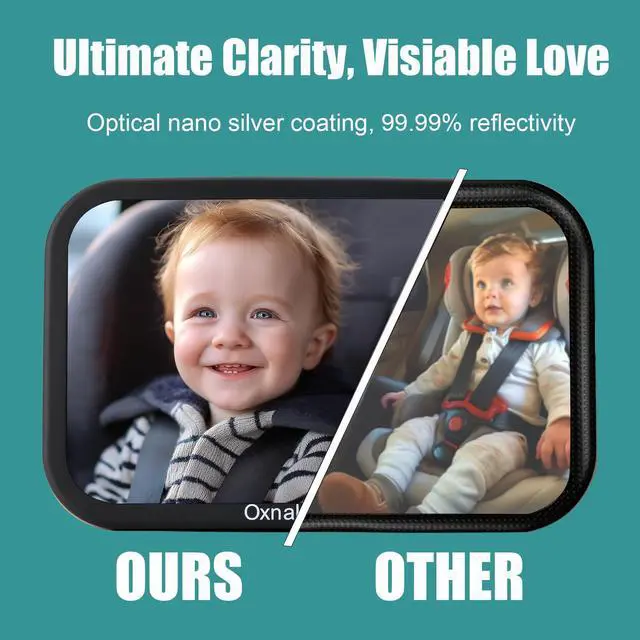 Ensure your baby's safety with the Oxnaleah rear-facing car seat mirror, featuring a shake-proof design and shatterproof plastic for peace of mind during every journey